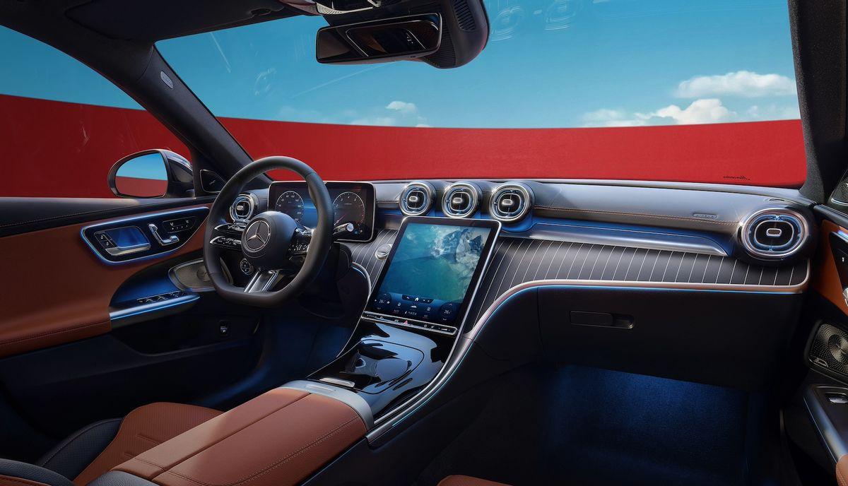 來到新奔馳C級(jí)的內(nèi)部,我們看到新車與現(xiàn)款在售車型基本保持一致,儀表臺(tái)采用縱置中控大屏,這與S級(jí)、E級(jí)保持一致。另外在智能交互方面,新奔馳C級(jí)配備了第二代MBUX智能人機(jī)交互系統(tǒng),支持27種語(yǔ)言交互,此外還配有高德定制導(dǎo)航。