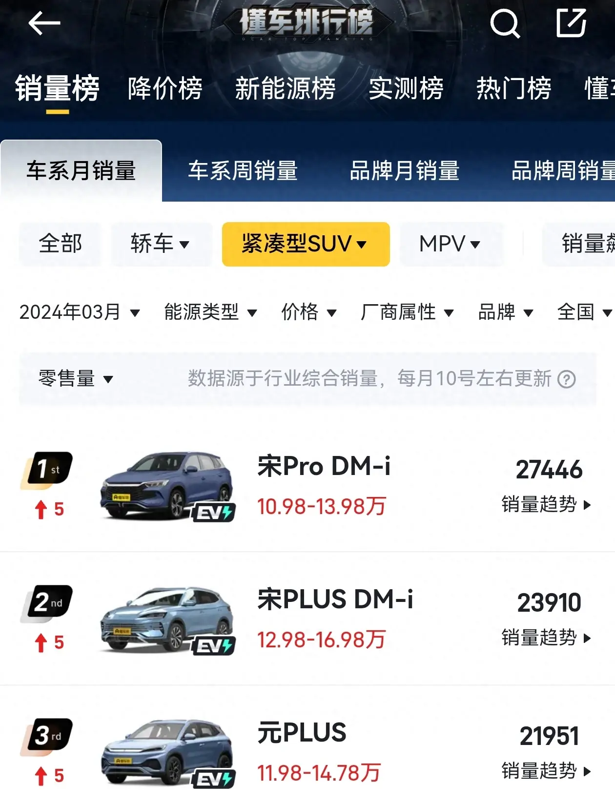 要說到最近緊湊型插混SUV銷量誰最火,那比亞迪的宋家族(宋Pro/PLUS DM-i)恐怕是無出其右。在3月份的銷量排行榜上,比亞迪的宋家族的兩款車型分別位列第一、第二名的位次,可見其受歡迎程度。如此暢銷的車型,自然也會吸引競品的蜂擁而至。而眼下就有一款車型,對標的就是當中的宋PLUS DM-i,它就是榮威D5X DMH。
