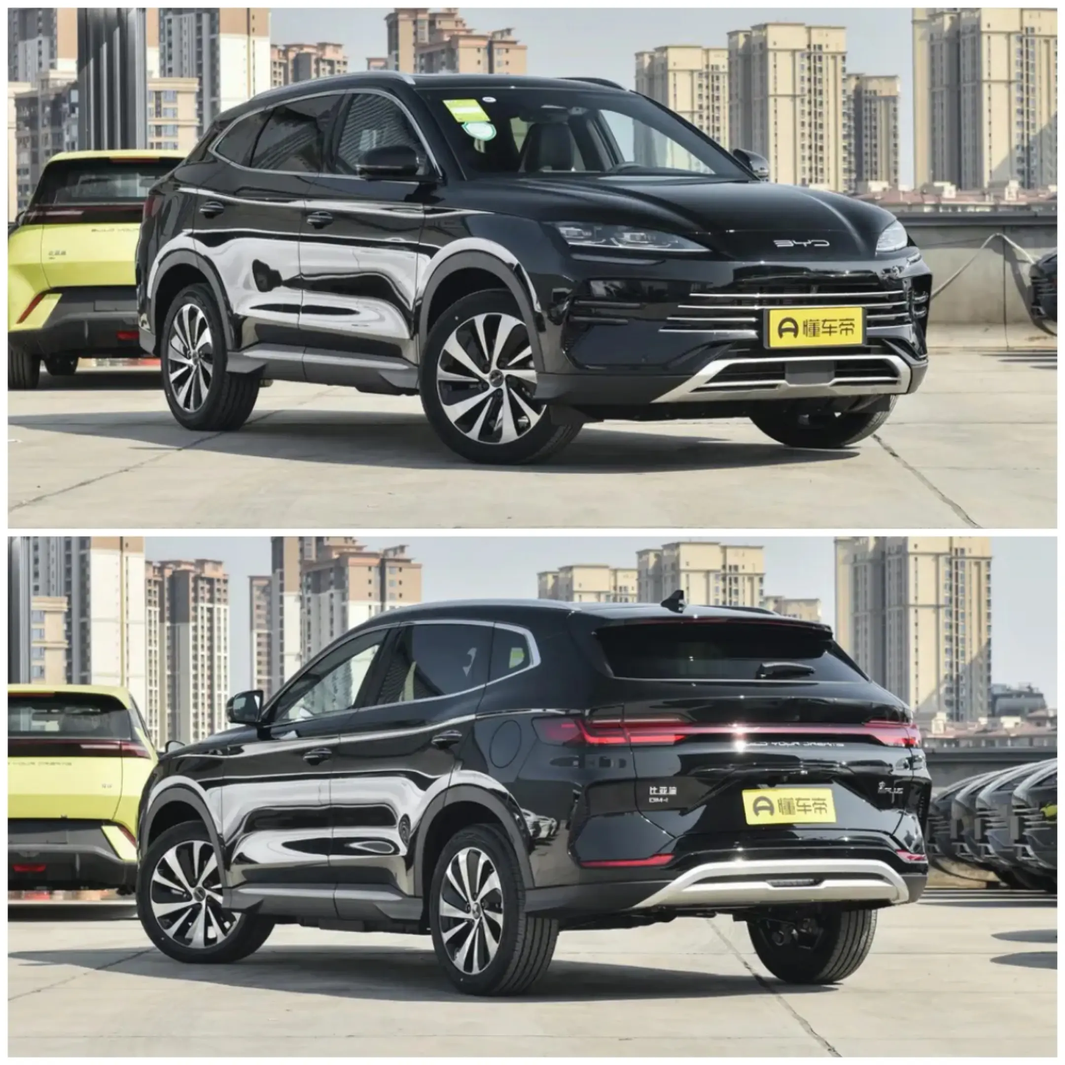 首先在車身尺寸方面,榮威D5X DMH的車身長寬高分別為4700mmx1890mmx1664mm,軸距為2765mm;宋PLUS DM-i的車身長寬高分別為4775mmx1890mmx1670mm,軸距為2765mm。可見兩款車在車寬與軸距兩個參數上完全相同,而在車長和車高兩個參數上,榮威D5X DMH略高于宋PLUS DM-i。