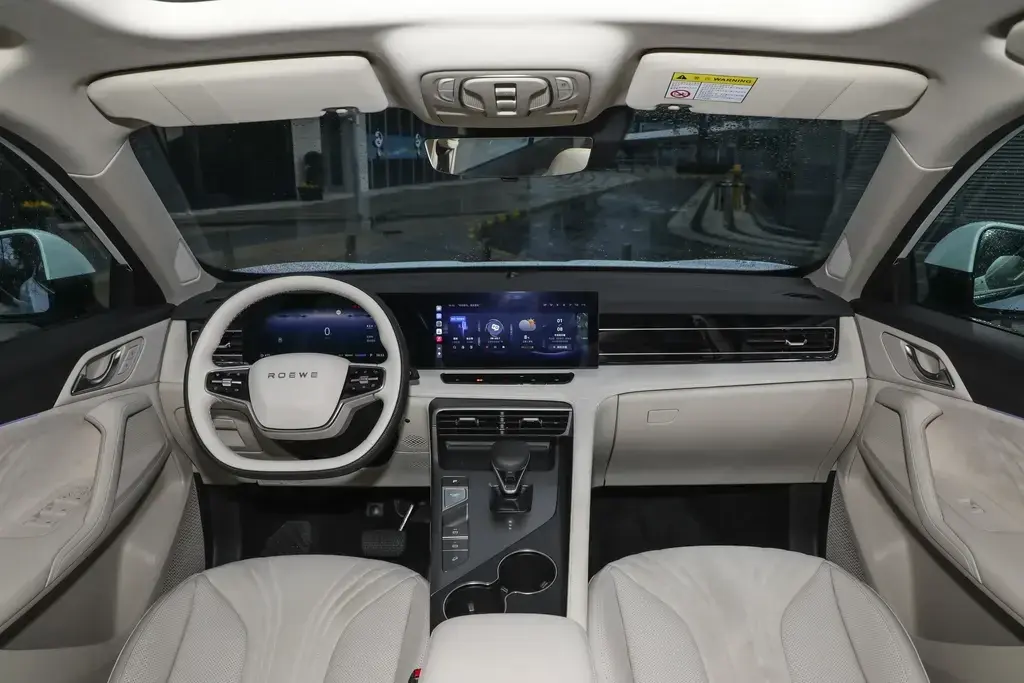 榮威D5X DMH的內飾設計以白色為主調,并大量采用軟質材質包覆。中控臺采用了懸浮一體式24.6寸雙連屏設計,搭配全新斑馬智行車機系統,用戶可輕松通過語音控制車內各項功能,極大地提升了日常用車的便捷性。中控屏下方及左側均保留了部分實體按鈕,便于駕駛員在行車過程中進行快捷操作。