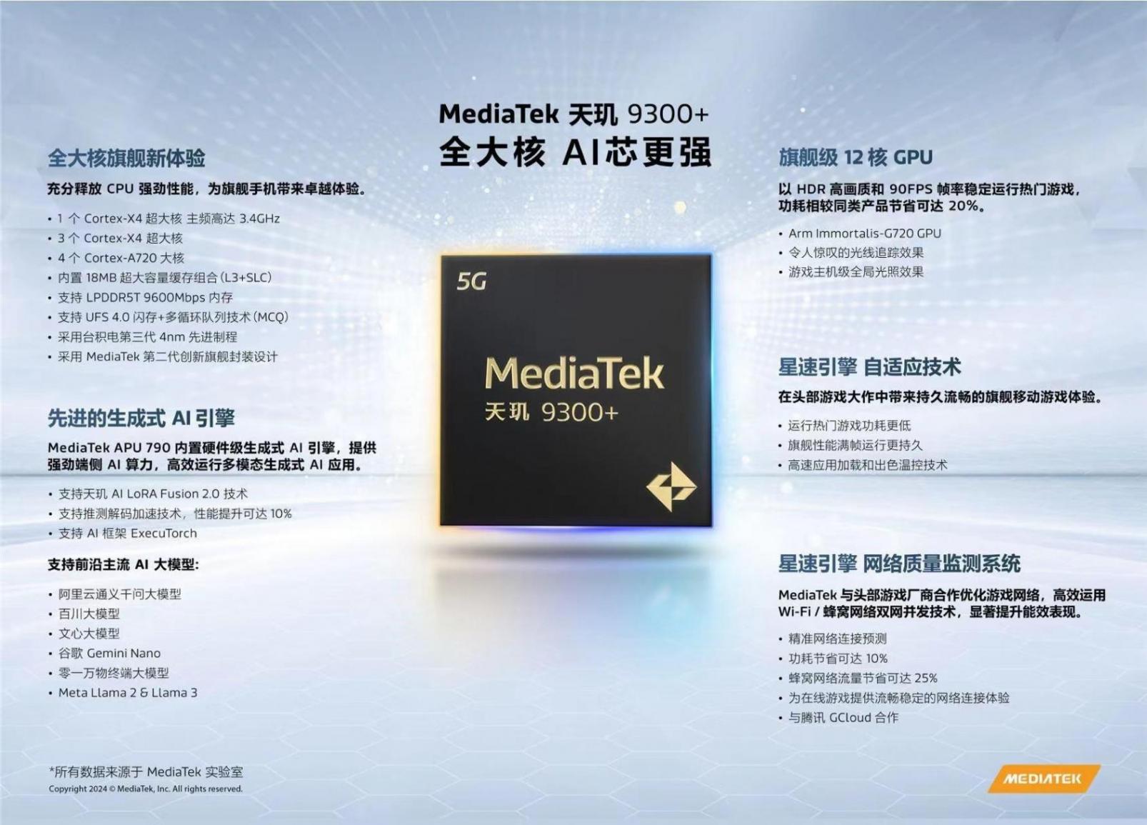 據悉,聯發科天璣9300+處理器在昨日的聯發科天璣開發者大會MDDC 2024上首次亮相。該處理器采用了全大核CPU架構,包含8個核心,其中包括4個主頻高達3.4 GHz的Cortex-X4超大核,以及4個主頻為2.0 GHz的Cortex-A720大核。而高通驍龍8 Gen3處理器則基于Qualcomm Kryo 64位架構,采用了4nm工藝,配置了1個基于Arm Cortex-X4技術的主處理器核心,主頻最高可達3.3GHz,另有5個最高3.2GHz的性能核心和2個最高2.3GHz的效率核心。