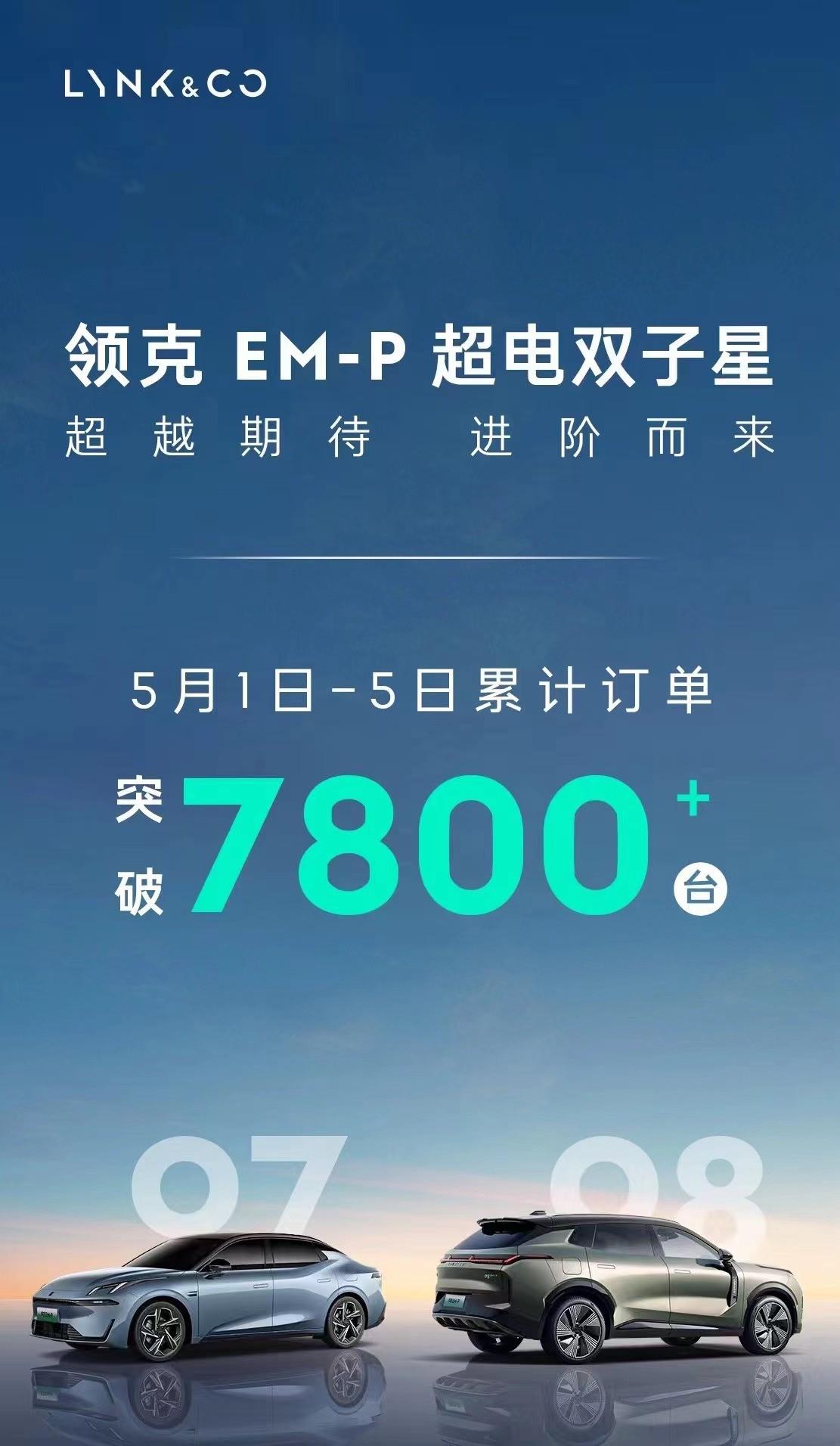 例如:許久沒放銷量榜單的東風日產公布了五一假期的累計銷量為21737臺,軒逸訂單10550臺。勢頭不錯的領克也公布了旗下領克07 EM-P和領克08 EM-P兩款車,5月1-5 日累計訂單突破7800臺!