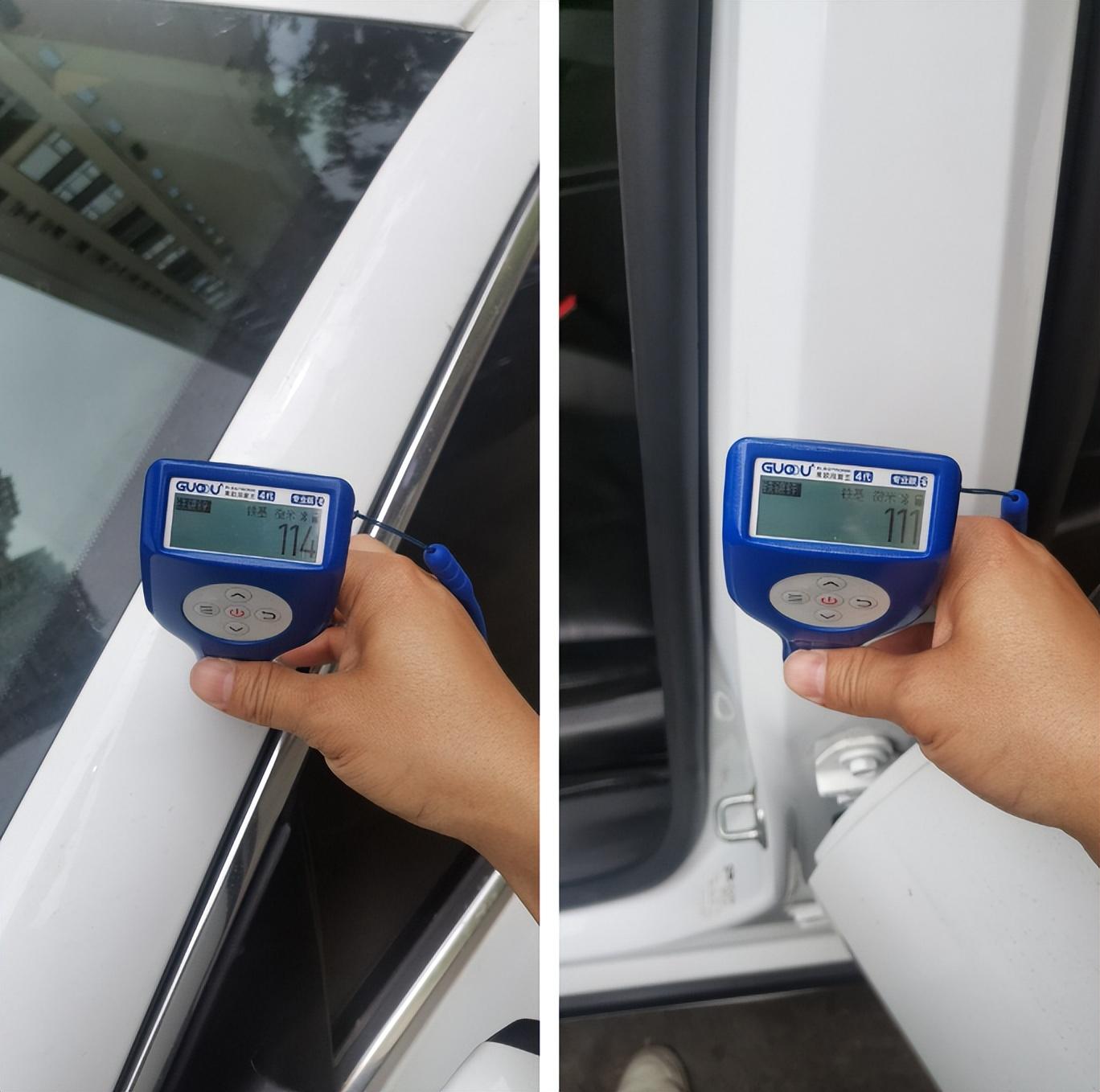 首先排除車輛左側車身的結構件,漆面數值均在110微米左右,可以排除受損修復。