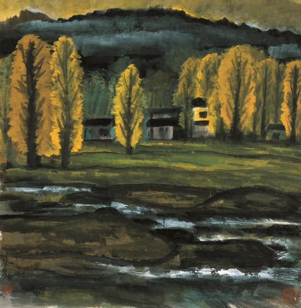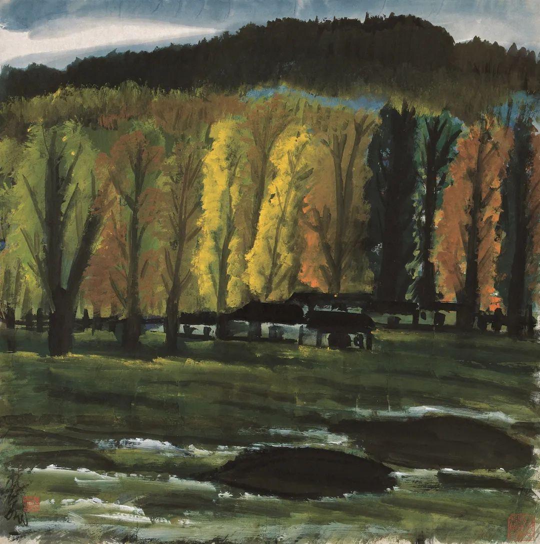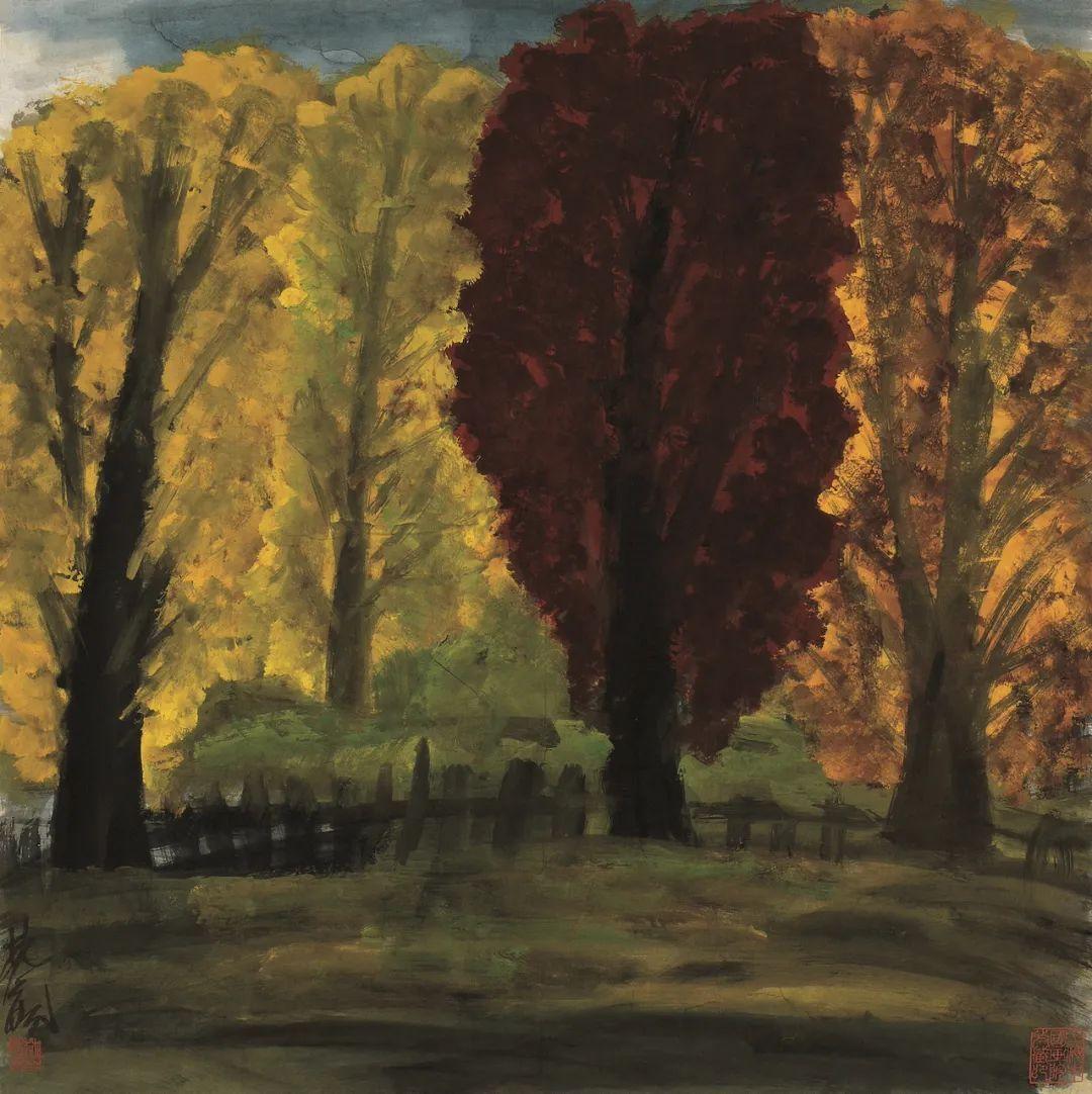 回來后,他反復試驗,以夕陽的金色、秋葉的濃烈為表現核心,形成了以“秋”為母題的系列風景畫。