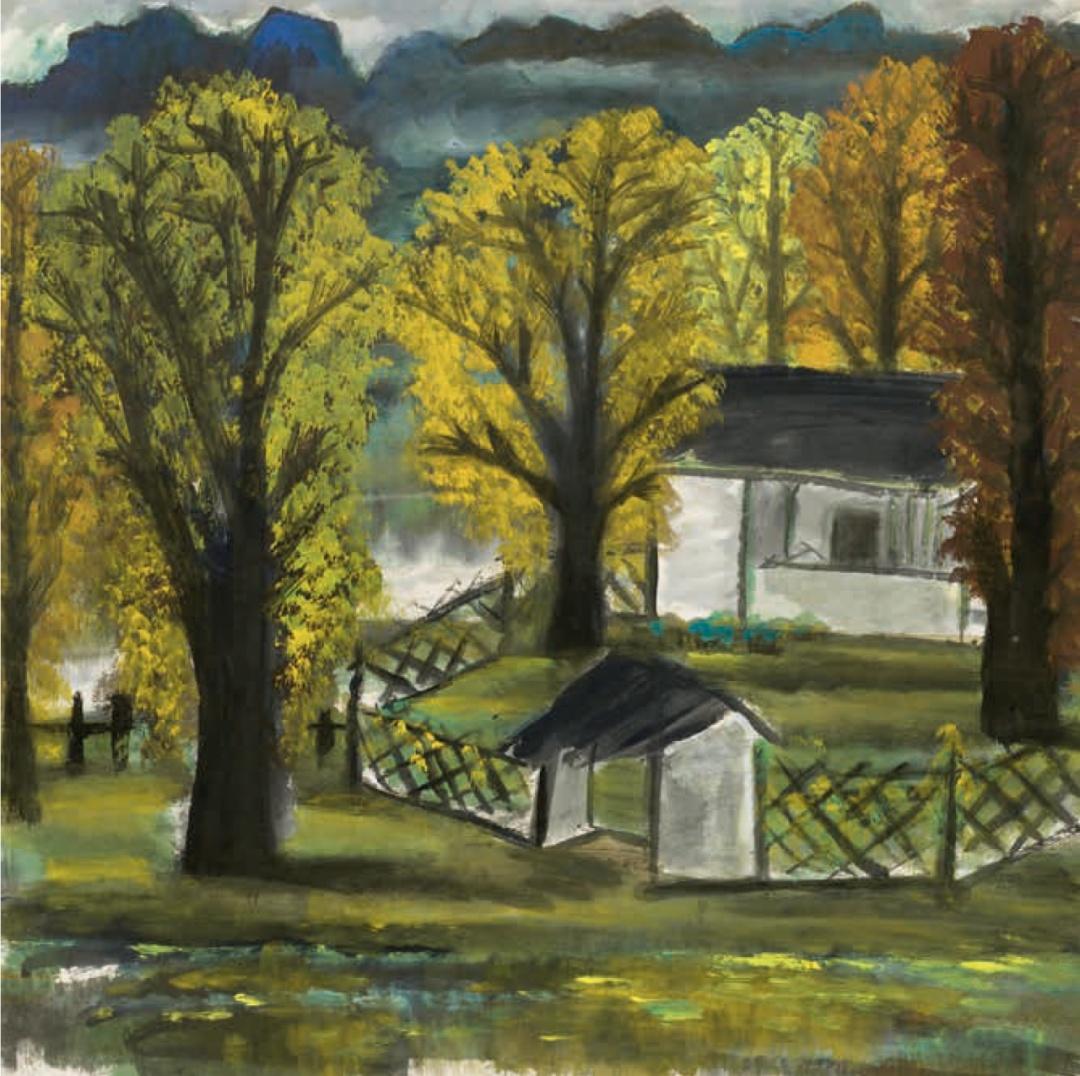 (左)林風眠《農舍》66×65厘米 中國畫 1953年 上海市美術家協會藏