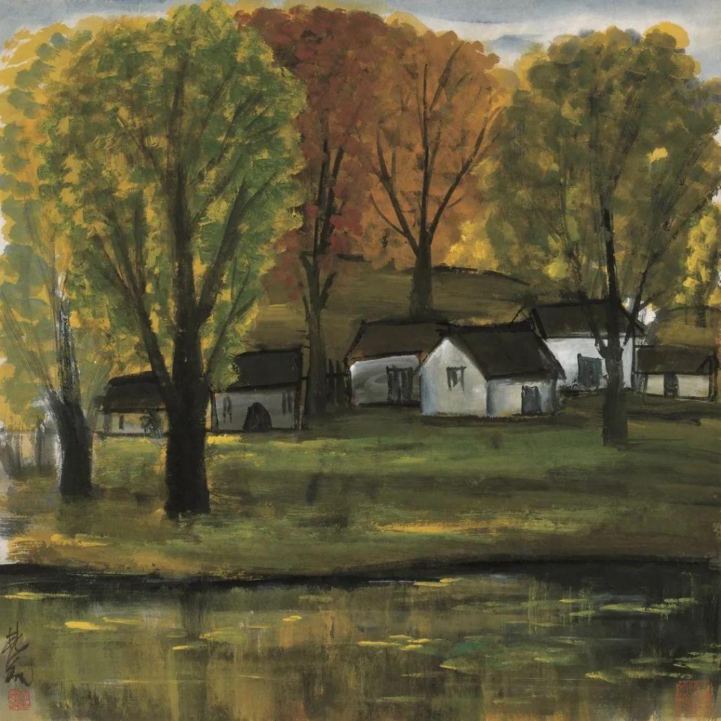 (下)林風眠《農村小景》66.5×66厘米 中國畫 1950年代 上海中國畫院藏