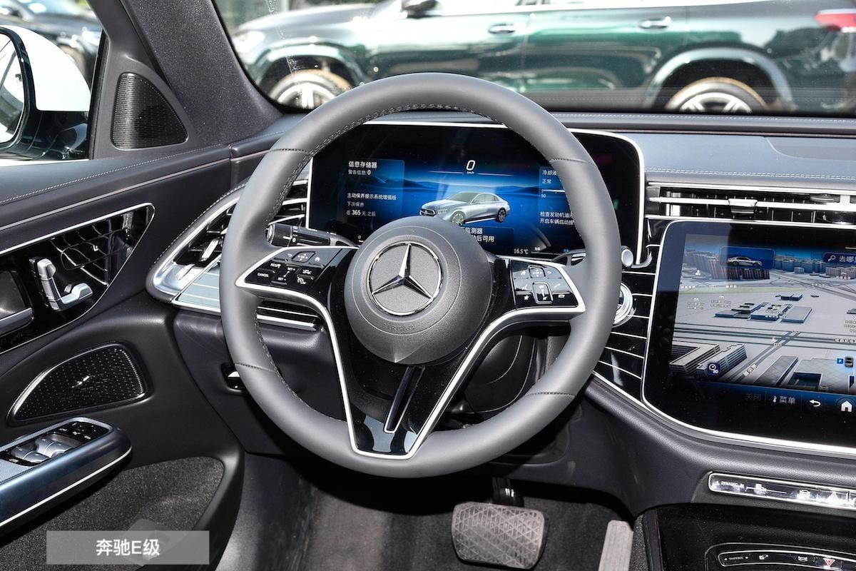 奔馳E級則有著更厚重的座艙內(nèi)設(shè)計,12.3+14.4英寸雙屏分別獨立布局,二者都布局于一個扇形裝飾面板結(jié)構(gòu)之上,而包括車門上的座椅電動按鍵在內(nèi)的主要控制區(qū)都通過烤漆材料進行獨立裝飾規(guī)劃,電子懷擋則繼續(xù)集成在三輻式方向盤后方,整個座艙的軟包覆蓋面積更大,強調(diào)科技之余,還是更商務(wù)化。
