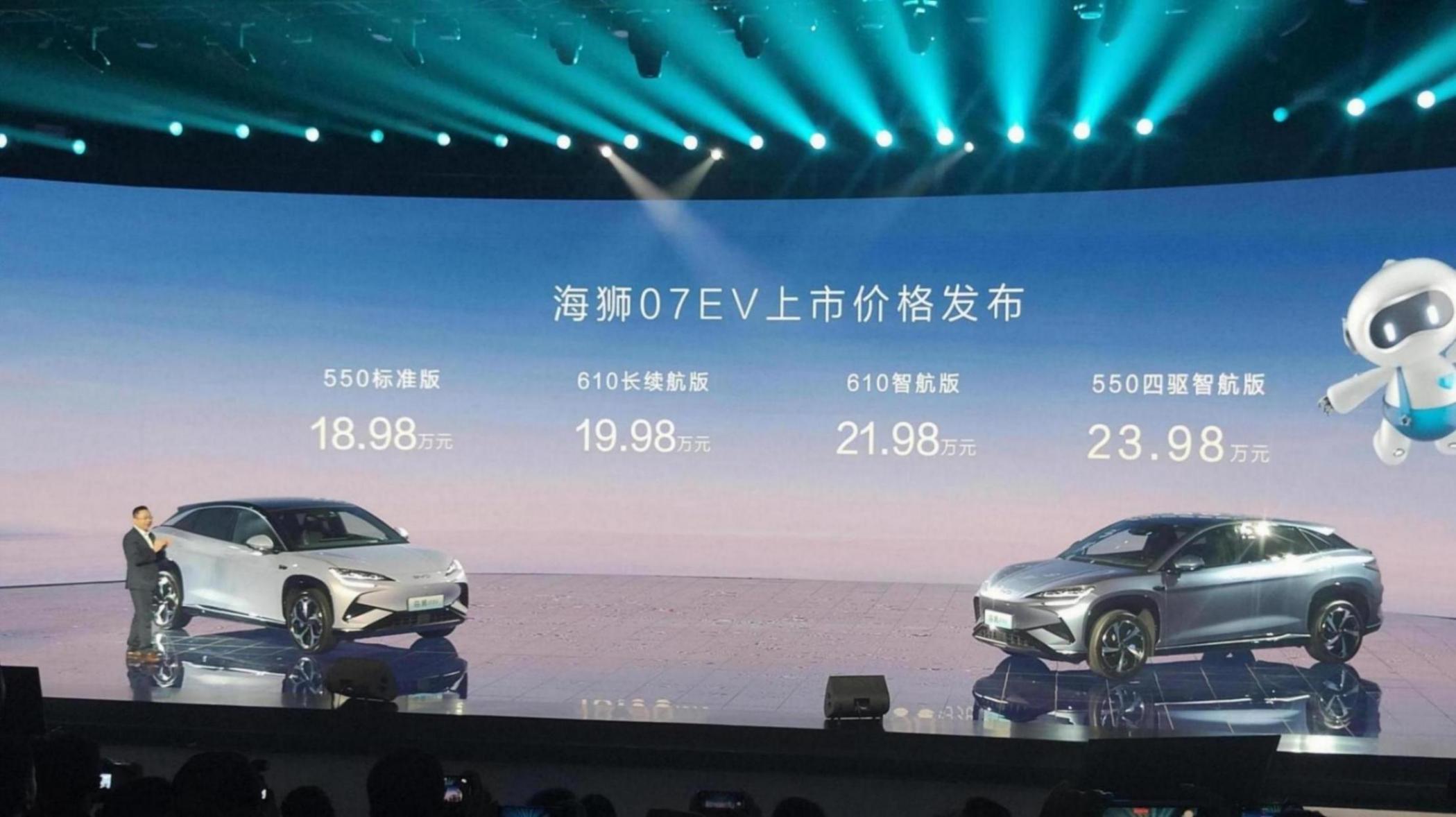 近日,比亞迪海獅07EV車型正式上市,新車并沒有像此前預料的那樣比宋L略低一些,而是有著基本相同的定位,相比于王朝網絡車型主打傳統的豪華風格和整體質感,還是因為增添了更多全新的技術,有著更加強的科技風。