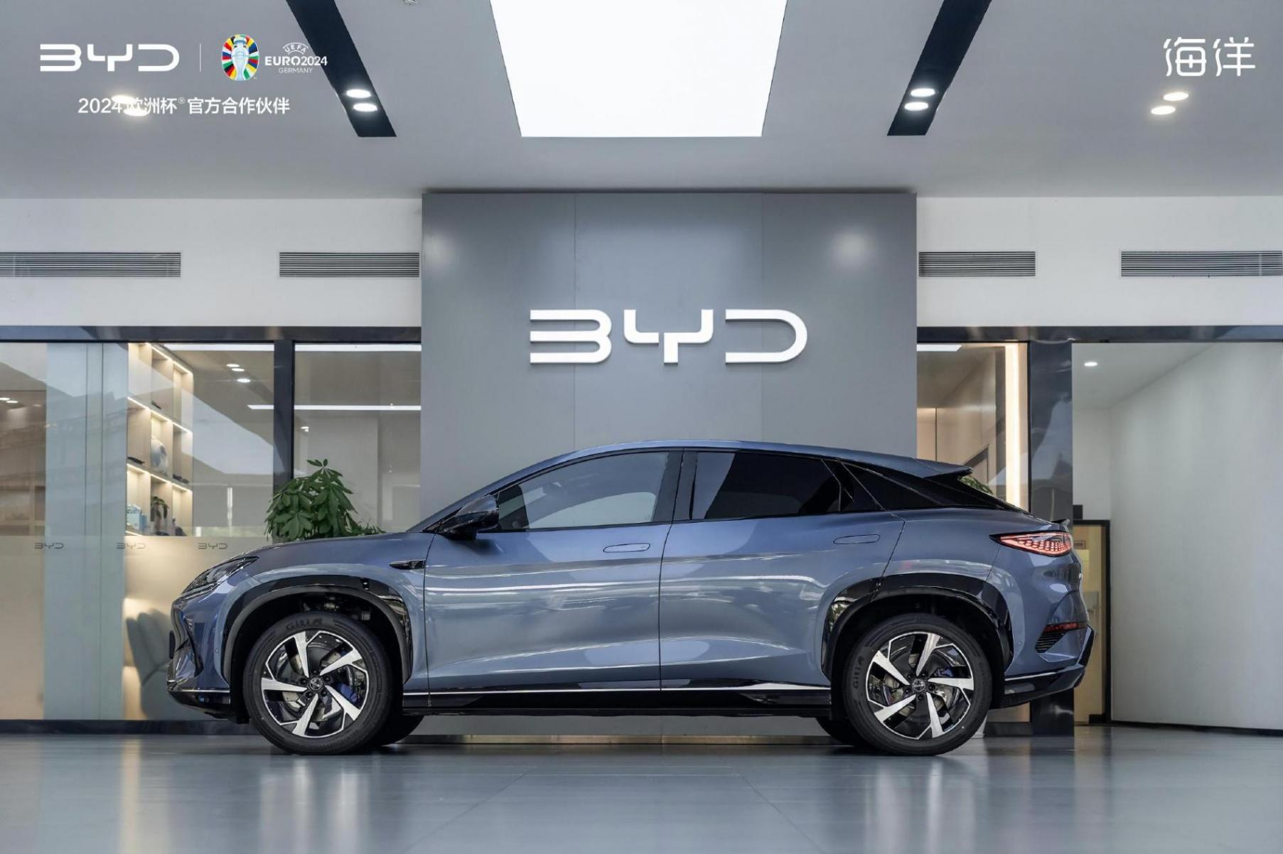 在外觀方面,新車在前臉部分采用了海洋家族標志性的設計語言,彎鉤狀的大燈組梯形下格柵霧燈區進氣道都顯得相當的運動。車身側面溜背轎跑式線條,流暢的車頂過渡,明顯下墜的C柱懸浮式車頂大尺寸氣動輪轂隱藏式車門把手都沒有缺席。在車尾部分,貫穿式的尾燈也是明顯的海洋網絡家族風格,與海豹DM-i一致,車頂大尺寸擾流板,尾箱蓋末端處小尾翼也顯得相當的運動。