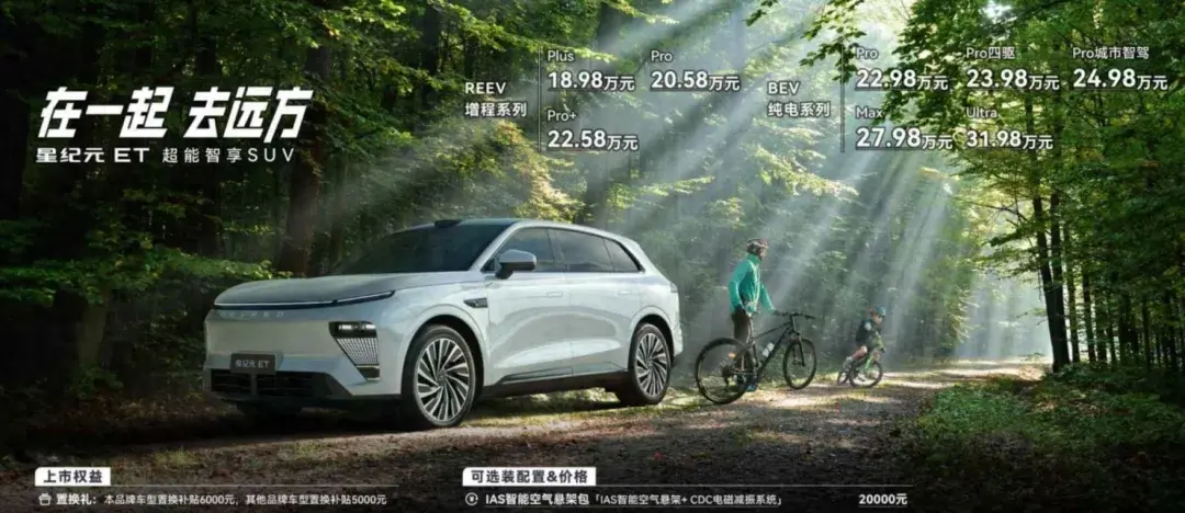 在2024年5月7日,星紀元ET增程車型極限續航測試挑戰從安徽蕪湖出發,一路向南,于5月9日抵達廣州,一鏡到底不補能,最終行駛里程達2141.4km,當日晚,星紀元ET在廣州長隆正式上市,推純電和增程共8款配置,售價18.98-31.98萬元。