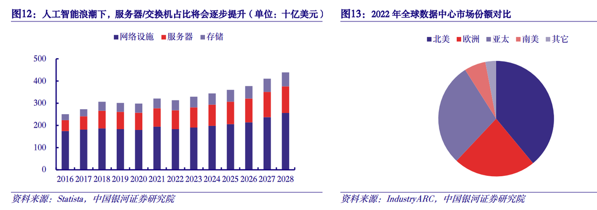 AI應(yīng)用對數(shù)據(jù)的處理與保存市場趨勢未來持續(xù)增長,主要是服務(wù)器行業(yè)增長會比較快,需求旺盛。而全球數(shù)據(jù)中心市場來看,歐美亞等地方市場份額最大。