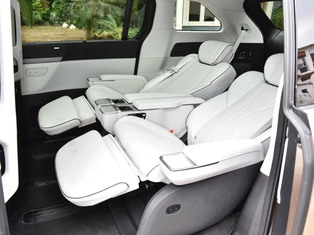 第二排還配有21.4英寸的后排娛樂屏,它支持大角度的調節,能讓您在任何坐姿下都擁有最佳的觀影體驗。除此之外,它的第二排座椅還擁有小桌板的配置,日常辦個工,吃個飯都會較為方便。