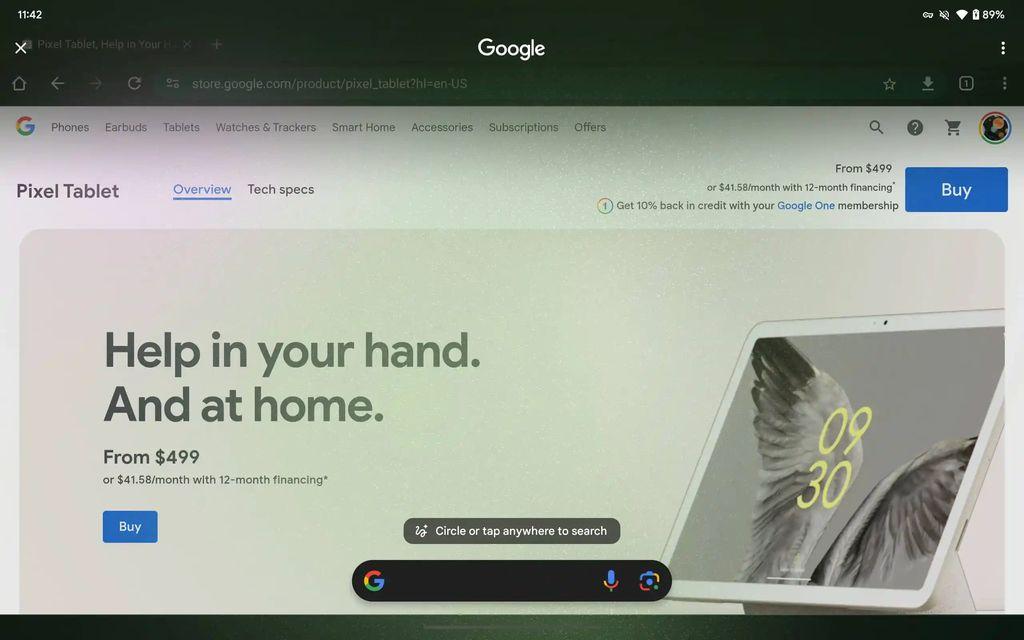 谷歌公司日前重新發(fā)售 Pixel Tablet 平板,128GB 版本的 Pixel 平板電腦售價(jià) 399 美元,不再捆綁銷(xiāo)售磁吸式充電底座。而谷歌在重新發(fā)售該平板的時(shí)候,就曾表示會(huì)引入“圈選即搜”功能。