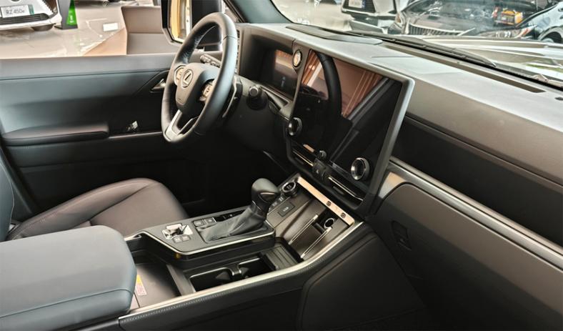 雖然這是一臺賣到七八十萬的雷克薩斯,但是GX的中控臺和“豪華”兩個字沒有太大關(guān)系,甚至可以說塑料感濃郁,你看不到太多的軟性包裹和木紋飾板,基本都是黑黑的組件。這在十年前不是問題,畢竟那時候的人對硬派SUV的內(nèi)飾完全沒預期,但放到2024年的現(xiàn)在,多少有點寒磣。