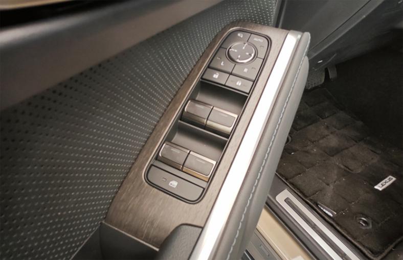 終于在車窗按鍵控制區(qū)域看到了一點木紋飾板,有種在水泥路上突然看到一段柏油路的感覺。