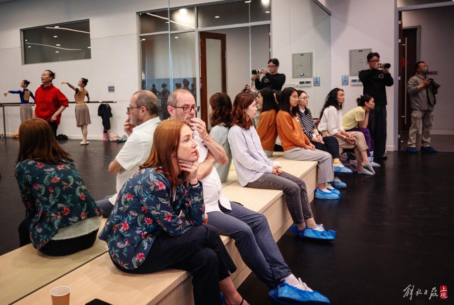 舞團總監埃里克·基耶雷先生和芭蕾大師奧克薩娜·庫切魯克坐在教室里,全神貫注地觀摩著辛麗麗授課。