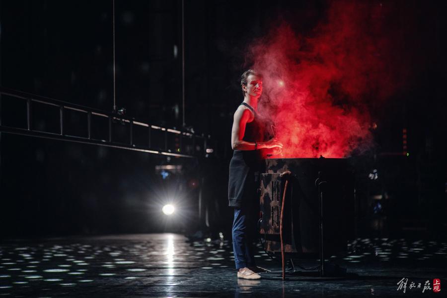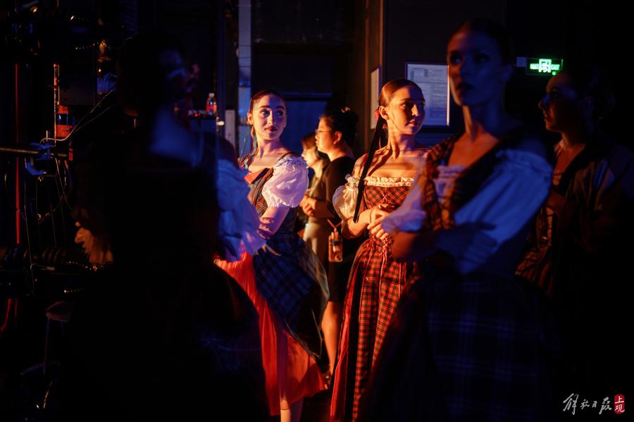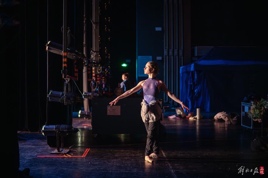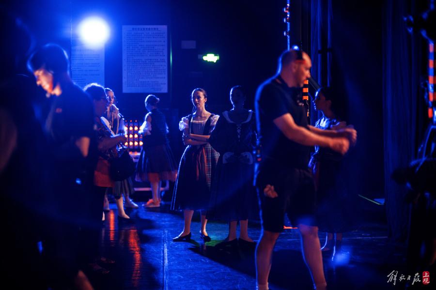 5月10日晚,上海首演開始前10分鐘,演員們在臺上熱身,在臺側候場。