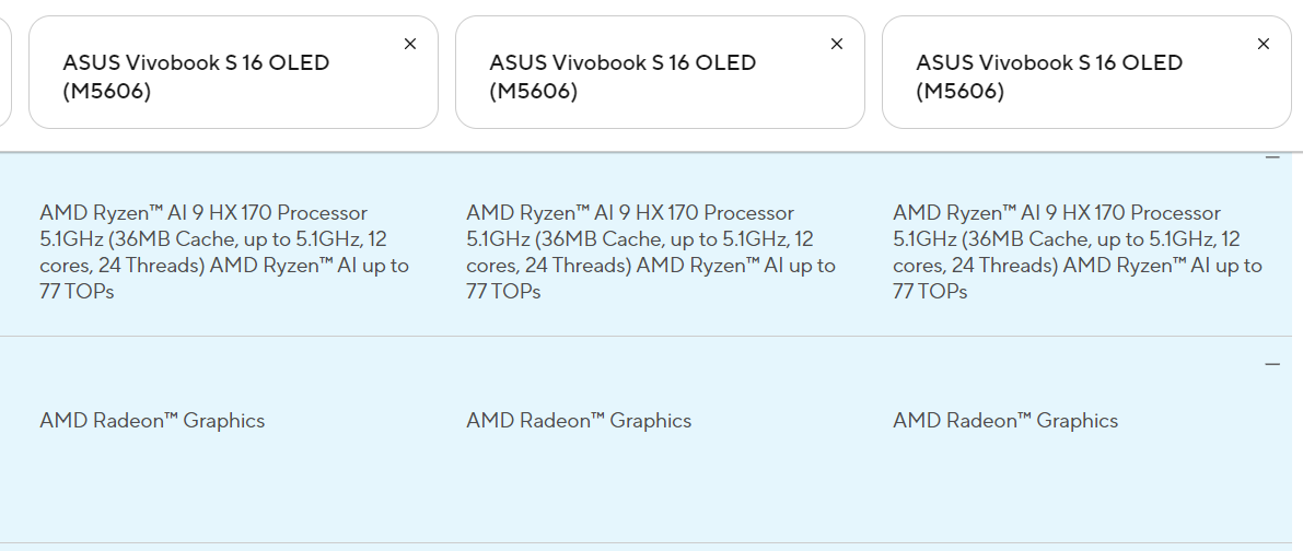 前段時間,華碩 Vivobook S 16 系列筆記本的配置頁面意外曝光。雖然話說很快就將其下架,但眼疾手快的網友依舊找到了其中的關鍵部分:電腦搭載了 AMD 尚未發布的、全新命名體系的處理器——AMD Ryzen AI 9 HX 170。