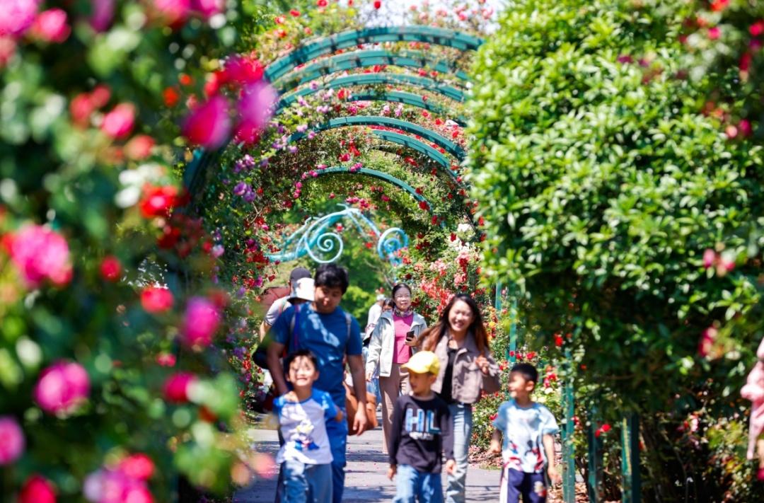 月季花開,浪漫悄然而至。眼下,上海辰山植物園月季園進(jìn)入最佳觀賞期,花期可持續(xù)至5月下旬。園內(nèi)月季品種繁多,芬芳爭艷,吸引了不少市民游客前去賞花。