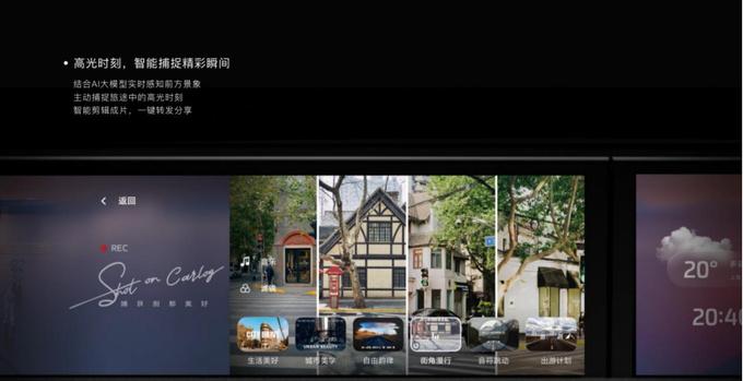 車機系統內置了高通驍龍8295芯片,以及Unity渲染引擎和OMR追光渲染模型。IMOS 3.0智能交互習題,運用AI算法、大模型技術,能夠讓車內的交互實現更多的場景化,全畫幅數字駕艙屏集成全域數字視野補盲、雨夜模式、一鍵AI代駕等功能,其全新多視角Carlog,可以實時調用車身四路攝像頭,捕捉最美的鏡頭角度;AI大模型主動感知記錄“高光時刻”,一鍵轉發分享社交朋友圈。