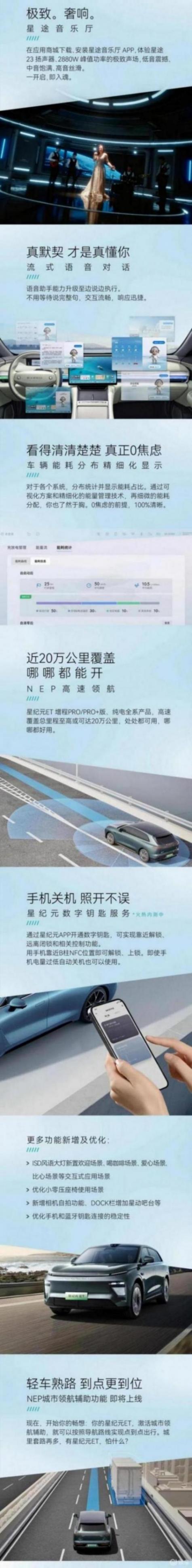 近日,星途官方表示,旗下星紀元ET將迎來首次OTA升級推送。此次OTA升級將涵蓋音響、智能語音、車輛能耗顯示、NEP高速領航等功能的新增與優化。