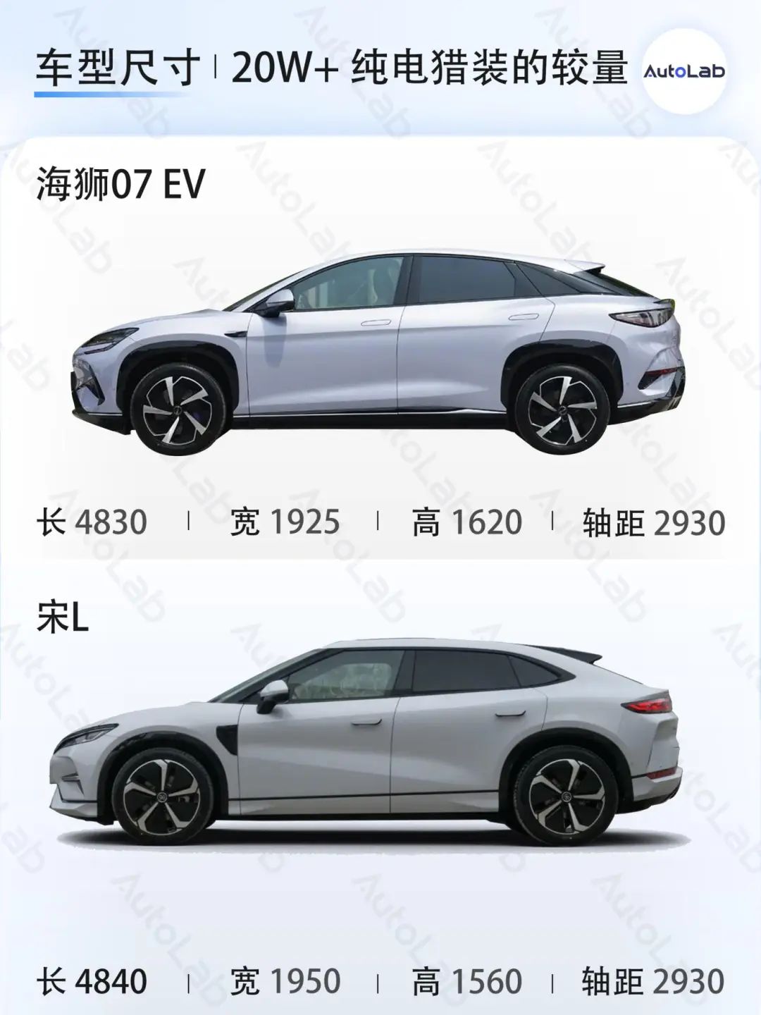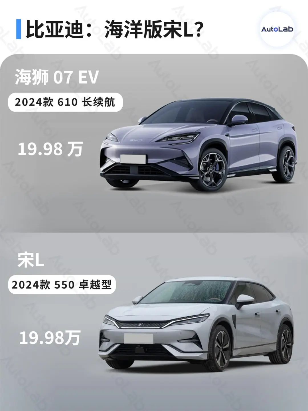 在這里我們選擇了價格相同的海獅 07 EV 610 長續航版和宋 L 550km 卓越型來進行對比,看看誰的性價比會更高。