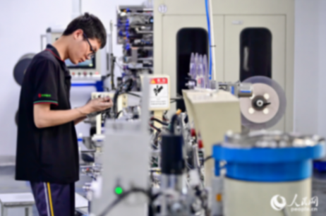 撫州市樂(lè)安縣的江西東馳新能源產(chǎn)業(yè)有限公司數(shù)字化車間內(nèi),工人在操作封裝設(shè)備生產(chǎn)鋰離子電池。人民網(wǎng) 朱海鵬攝