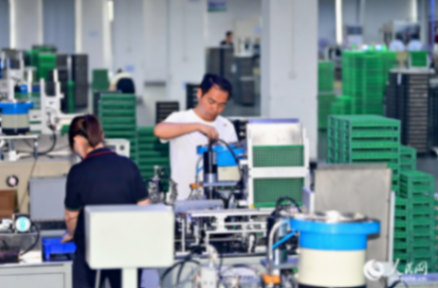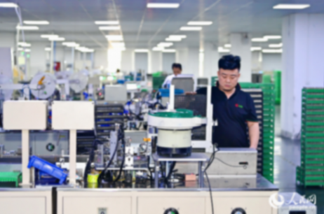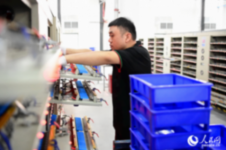 撫州市樂(lè)安縣的江西東馳新能源產(chǎn)業(yè)有限公司數(shù)字化車間內(nèi),工人通過(guò)充放電設(shè)備測(cè)試鋰離子電池性能。人民網(wǎng) 朱海鵬攝