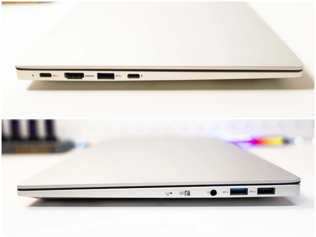作為一款輕薄本,玄派俠氪的接口配置也非常給力,除了一個全功能USB-C和一個USB4接口外,還有2個USB3.2 Gen1及1個USB2.0接口,HDMI1.4b和3.5mm音頻口也沒落下,不管是外接鼠標、鍵盤還是顯示器,均可滿足。值得一提的是在機身側邊還提供了一個攝像頭安全鎖,可以有效保護隱私。