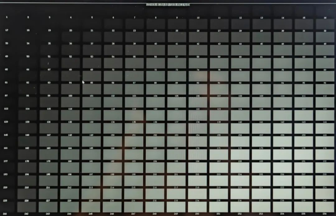 屏幕的灰階指的是將最亮和最暗之間的亮度變化區分為不同的層級,每一級就表示一個亮度變化,中間層級越多,那么呈現出來的畫面效果也就會越細膩。這里采用256級灰階測試,手機拍攝的照片可以分辨到3級,實際看到的接近1級。
