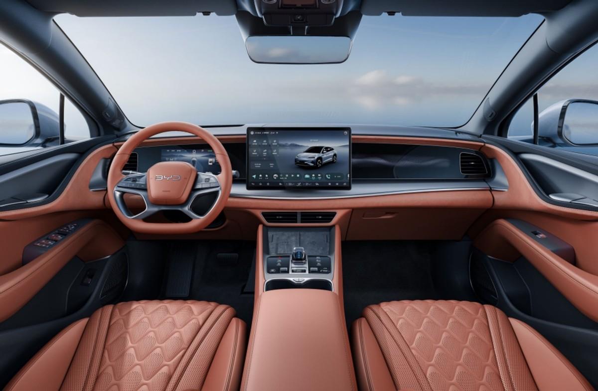 車身側面,新車采用了大溜背的造型,與兄弟車型比亞迪宋L相似,營造出跨界轎跑SUV的動感與時尚。車身尺寸方面,其長寬高分別為4830/1925/1620mm,軸距達到2930mm,后備廂容積為500L,車內乘坐空間和載物能力都很出色。
