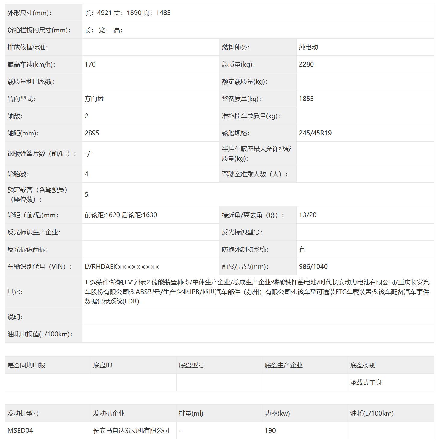 尺寸方面,新車的長寬高分別為4921/1890/1485mm,軸距為2895mm,定位是中型轎車,標配的是245/45 R19規格的輪胎。