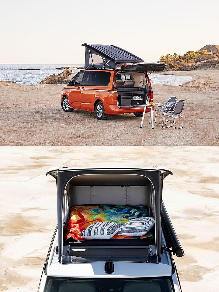 除了車室空間變得更加寬敞,讓這款露營車在生活起居空間更為舒適之外,在運用靈活性上也同樣有所提升,T7 California 采用雙邊側滑門設計,意味著能夠兩側進出車室,一改原先單邊側滑門設計,也讓兩側都能搭配車邊帳來使用。