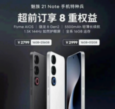 魅族將于5月16日發(fā)布魅族21 Note,官方稱其為手機特種兵,該款手機的配置參數已經曝光,魅族21 Note采用1.5K 144Hz直屏,搭載驍龍8 Gen2處理器,配備5500mAh 電池、66W有線充電,全系16GB運存。