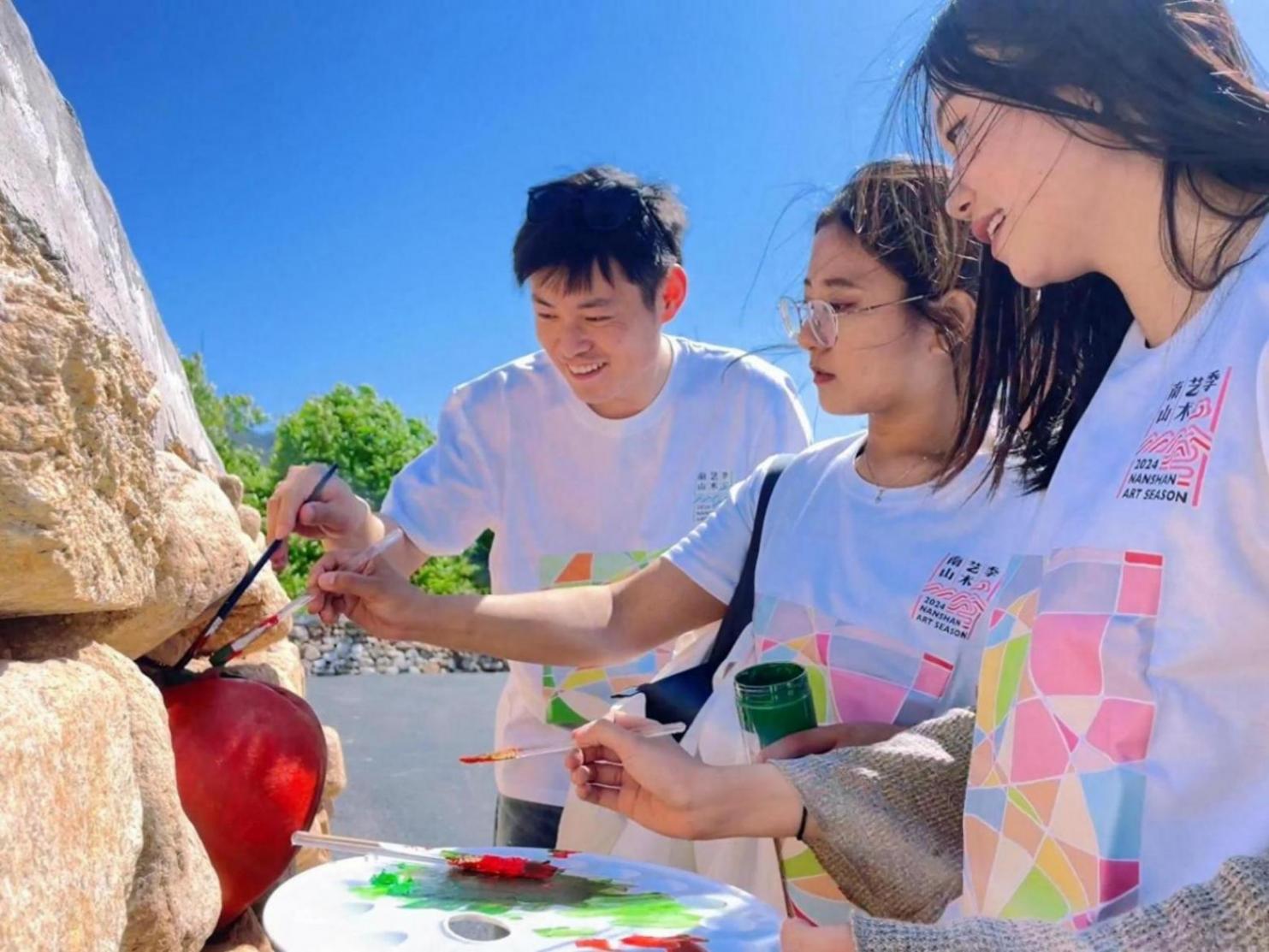 來自清華大學、中央美術學院、天津美術學院、燕山大學等8所高校的學生,或揮毫潑墨,或雕琢塑形,或搭建裝置,以藝術作品呈現南山村的自然風光和人文底蘊。