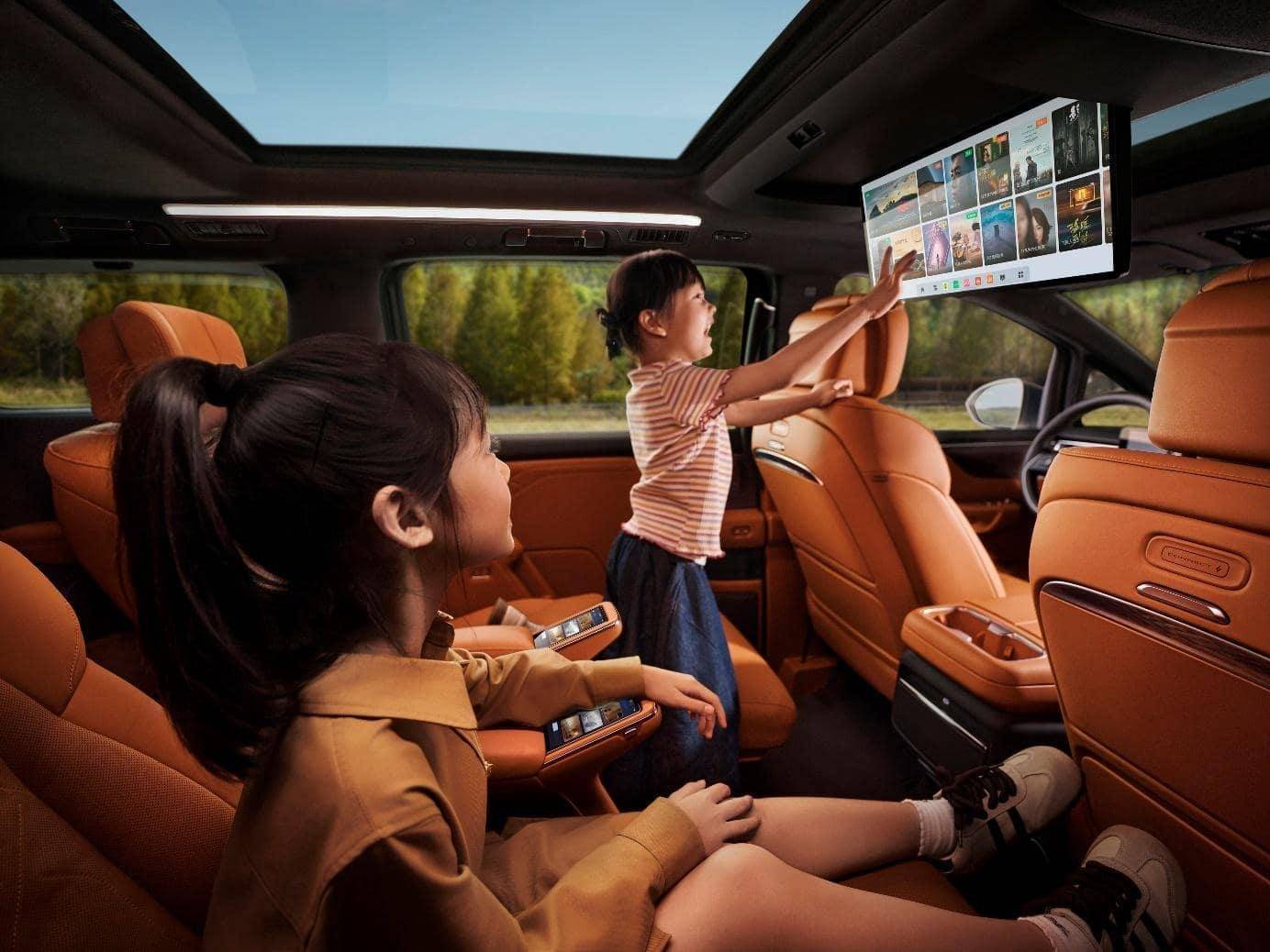 科技配置的呈現方式很聰明,沒有堆砌參數。16.3英寸的中控屏和副駕屏連在一起,卻能獨立操作——我用副駕屏刷劇時,同行的伙伴在中控屏查路線,互不干擾。后排那臺21英寸4K屏是點睛之筆,連接Switch玩《馬里奧賽車》時,Bose音響的環繞聲讓孩子們在展臺外都吵著要進來。這些屏幕都經過低藍光認證,長時間看也不會累,高通SA8775P芯片的加持下,切換應用時的跟手度,和我的平板沒差別。