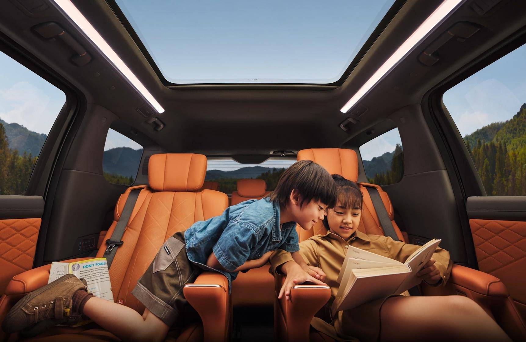 作為MPV,空間是繞不開的話題。至境世家5260mm的車長不算同級最長,但2023mm的寬度卻很有優勢。6座版的二排零重力座椅,坐墊長度比埃爾法還多出3厘米,我185cm的身高坐進去,膝蓋下方能完全承托。第三排也不是“寵物座”,腿部還有兩拳余量,這得益于3160mm軸距的合理分配。后備廂常規狀態能塞4個24寸行李箱,把第三排座椅調至最前,甚至能放下嬰兒車和露營裝備,兼顧家用和短途出行。