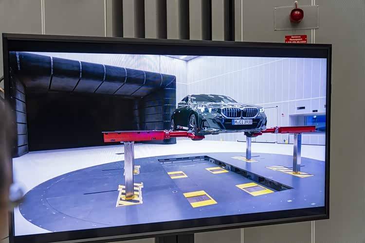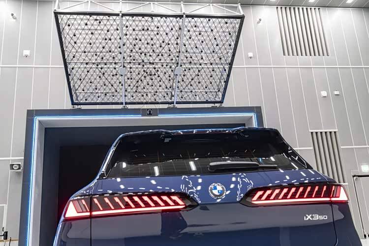 回到新世代iX3的開發過程:當測試車置于風洞中心時,周圍無多余干擾,噪音來源純粹且極易捕捉,這讓iX3的NVH(噪聲、振動與聲振粗糙度)開發從一開始就站在了高起點上。實驗室17級強風對應的模擬時速高達250km/h,而iX3在開發的每個階段,都會在此進行嚴苛測試——從車身造型、底盤結構,到輪胎選型,甚至車內振動引發的細微噪音,都會被精準捕捉,其精度能達到厘米級別。這種“精準定位噪音源、抽絲剝繭解問題”的模式,不僅大幅提升開發效率,更讓降噪效果的準確度和精確度達到無可比擬的水準。