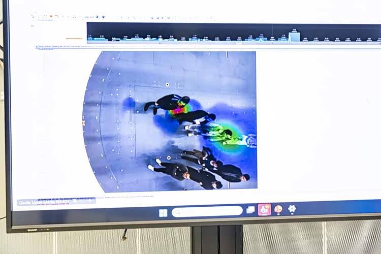 實現這一超高精度捕捉的核心設備,是寶馬自研的聲學攝像機系統。風洞口的網格上固定著216個高精度聲學麥克風,能瞬時捕捉各類噪音源;再通過計算噪音源與每個麥克風的距離,反向模擬出噪音源的精確位置,最終將聲音信息轉化為不同顏色和對應數據,直觀呈現在軟件系統中。