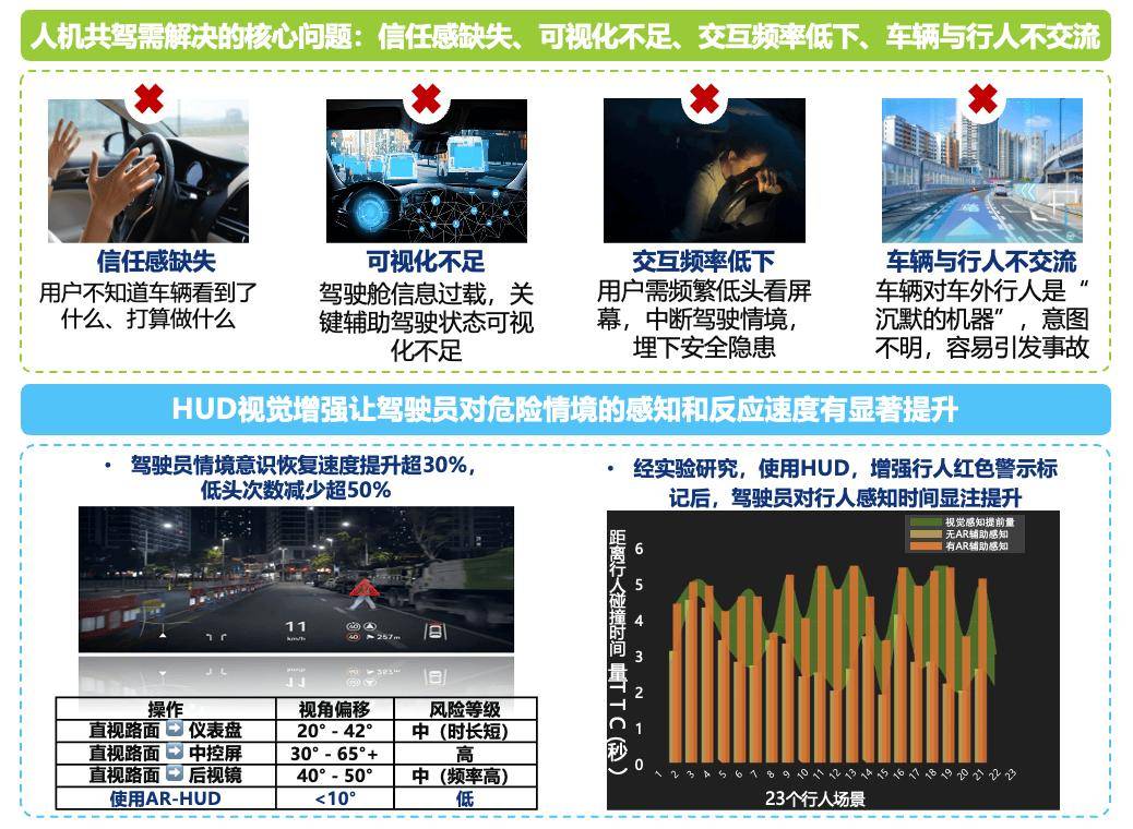 段文平指出,人因研究結果顯示,HUD能減少50%駕駛員低頭查看儀表的次數,將突發狀況以光學方式標紅提示,可顯著提升駕駛員對危險情境的感知和反應速度。將HUD的視覺成像距離提升至7.5米至10米以上,可大幅減輕視覺負荷,保障駕駛舒適性。