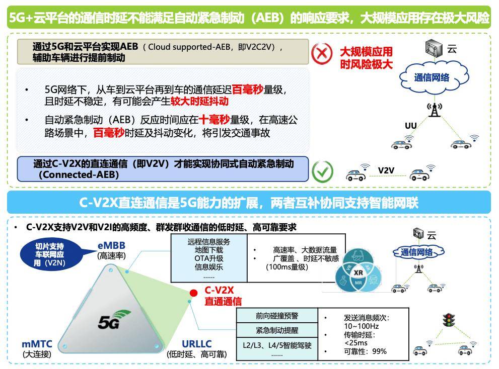中國信息通信科技集團有限公司副總經理、總工程師陳山枝在三十二屆中國汽車工程學會年會暨展覽會“先進通信技術賦能汽車智能化躍遷”專題論壇中提出:“單車智能發展在感知的時效性和準確性方面存在挑戰,然而通過5G和云平臺輔助車輛在高速公路場景下實現提前制動存在極大風險,因其通信延遲較長且時延不穩定。C-V2X作為5G能力的擴展,支持V2V和V2I高頻度、群發群收通信的低時延和高可靠要求,通過C-V2X車路協同可提升單車感知能力,降低車端成本與算力需求,優化整體交通效率,建議優先在高價值場景推動C-V2X的落地應用。”