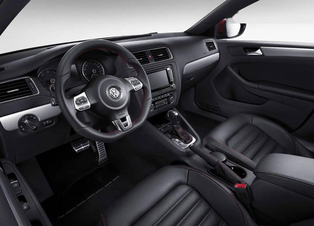 但當你坐進GLI的駕駛艙時,馬上看到了一個與普通速騰很不一樣的內飾,到處都充滿運動感的鍍鉻裝飾,黑色的內飾加上方向盤、排擋桿和座椅上GTI般的紅色縫線,著實是非常酷。