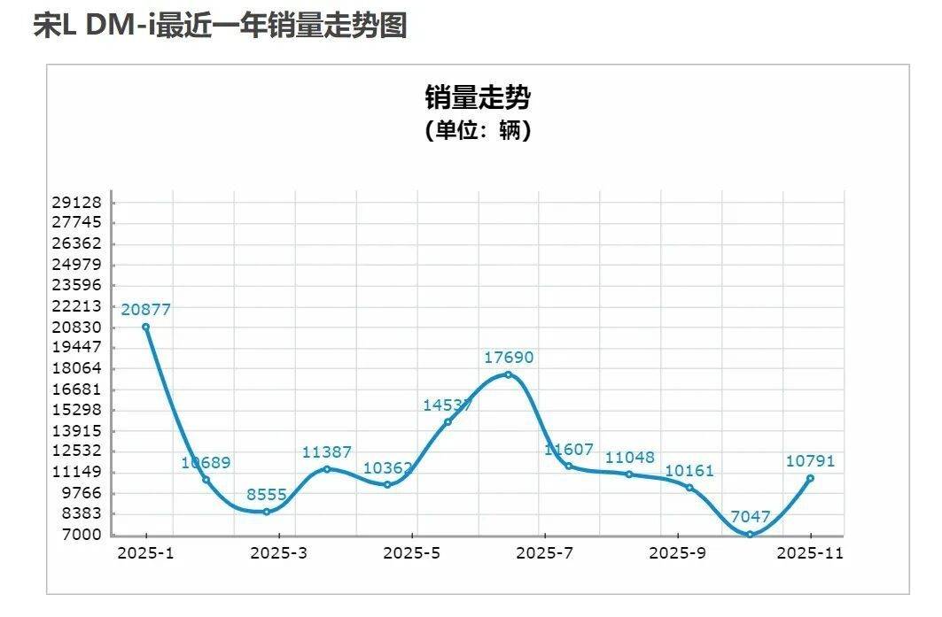 比亞迪宋L DM-i憑借品牌和技術的雙重優勢,實現了“上市即爆款”。數據顯示,自2024年7月底上市以來,宋L DM-i月均銷量保持在萬輛以上,其中,2025年11月銷量為10791輛,而 今年1-11月累計銷量為123874輛,展現了強大的品牌號召力。