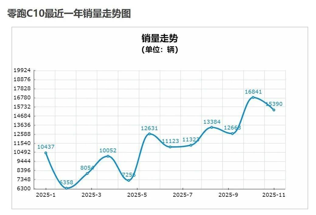 而零跑C10作為一款新勢力品牌推出的車型,攻勢同樣迅猛。數據顯示,自2024年3月上市以來銷量呈現出迅猛的增長勢頭,截至2025年11月累計銷量已突破20萬輛,尤其是2026款車型上市后已連續7個月銷量破萬,穩居新勢力銷量榜首,證明了其產品策略的成功。