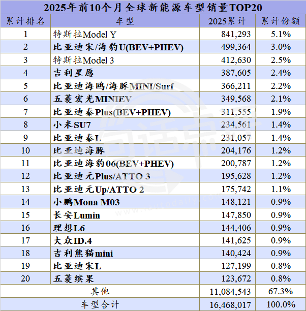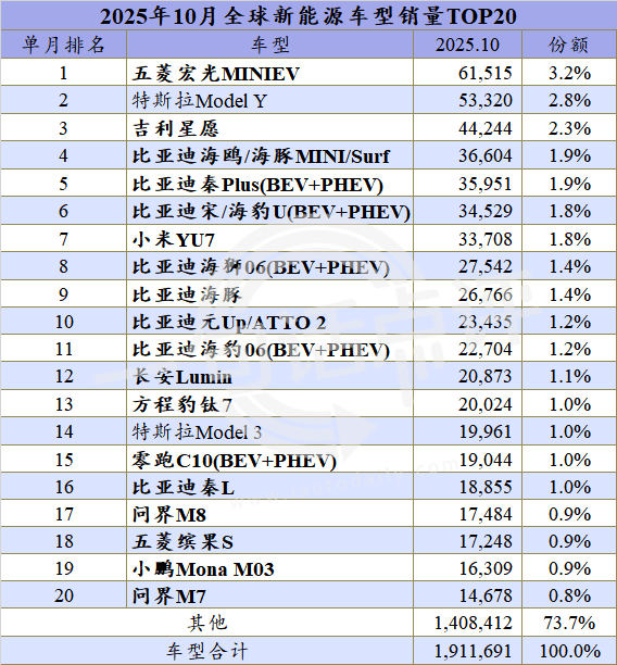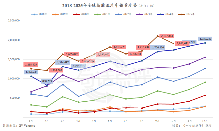 隨著季度初特斯拉的交付來到淡季,加上美國電動車聯邦稅收抵免7500美元政策的結束,10月全球新能源銷量再次回落至200萬輛以內。