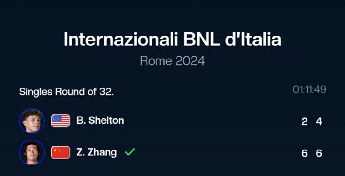 北京時間13日凌晨,在ATP1000羅馬大師賽男子單打第三輪比賽中,中網協選手張之臻2比0戰勝12號種子、美國選手謝爾頓,晉級16強。
