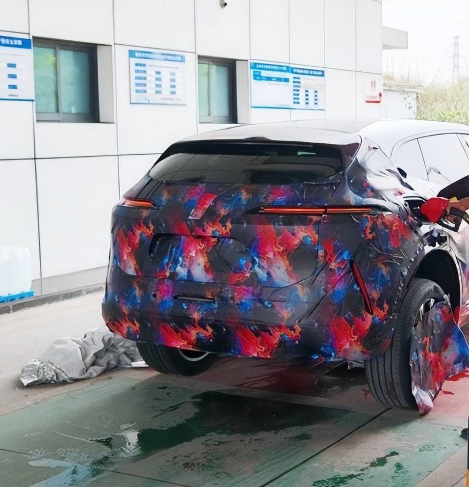 車身側面部分,造型有著溜背風格,采用了隱藏式門把手設計,大概率會是無框車門設計,密幅拼色輪轂十分動感。