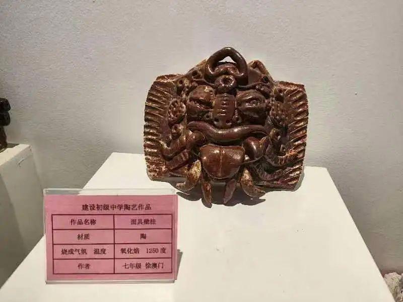 走進學校的陶藝館,就能看到一件充滿創意和匠心的陶藝作品《面具壁掛》陳列在此。這件作品的作者,正是斬獲第45屆世界技能大賽車身修理項目冠軍的徐澳門,就讀于七年級時他創作出這件藝術作品。