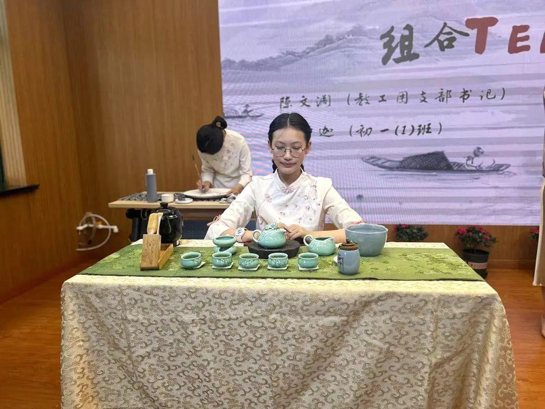“茶藝小達人”初一(3)班趙雪妍在探索茶道的過程中,傳統文化的精髓已在不知不覺間內化為她的修養和氣質。在日常生活中,趙雪妍樂于與老師和同學們交流沖泡手法和品茶心得,并分享自己沖泡的茶品,給大家帶來視覺、味覺和嗅覺的享受。