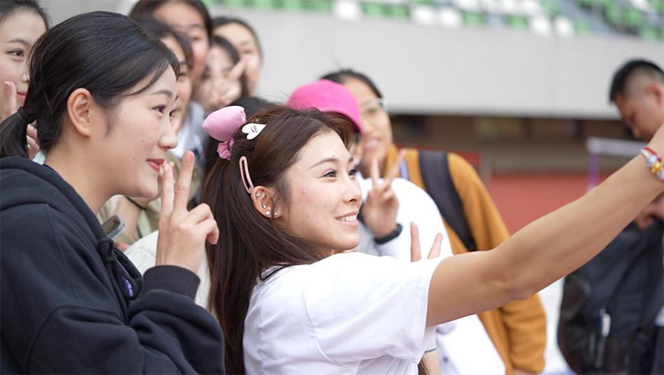 吳艷妮和粉絲合影。